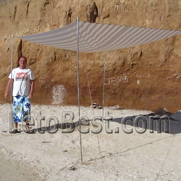В тени навеса могут удобно разместиться 4 взрослых человека. Установить навес можно в первой линии на пляже у самой воды. Идеально подходит для отдыха с детьми. Ребенок может играть возле воды и Вам не нужно волноваться об обгорании на солнце.